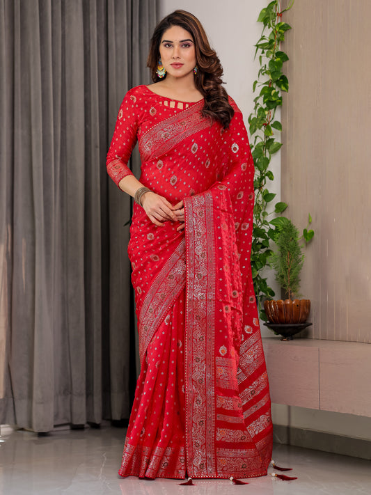 Raas Shree’s Signature Fendi Satin Block Print & Foil Shine Sarees