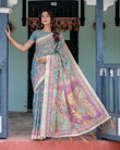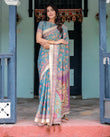 Saree Base: Aqua Blue with Multicolor Floral Print