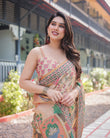 Elevate your ethnic style with this beige handloom cotton-linen saree, a stunning fusion of heritage motifs and modern design. The saree is adorned with intricate elephant and floral prints on the pallu, narrating tales of tradition and royalty. The body is beautifully complemented by vibrant floral motifs, adding a pop of color to the subtle beige base.