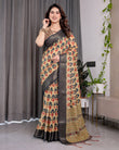 Design: Digital Floral Buttas, Ethnic Pallu Print, Antique Zari Border, Tassels