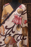 Beige & Mustard Malai Silk Dupatta with Floral Vine Artwork, Fish Motif & Traditional Cow Pallu Print