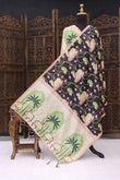 Black Malai Silk Dupatta with Cow Motif & Palm Tree Border – Folk Inspired Ethnic Elegance