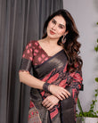 Color: Black Base with Rust Red Floral Hearts & Multicolor Pallu