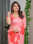 This saree comes with an attached blouse piece that complements the romantic theme perfectly.