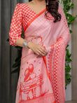 The highlight of this saree is its romantic illustrated pallu, showcasing: