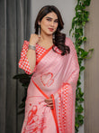 The saree comes with an attached blouse piece that complements the saree perfectly.
