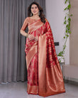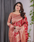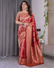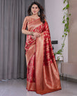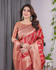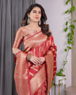 Classic Red Pure Kanjivaram Silk Saree with Rich Zari Floral Striped Pallu & Brocade Border | 5.5m Saree + 0.8m Blouse Piece