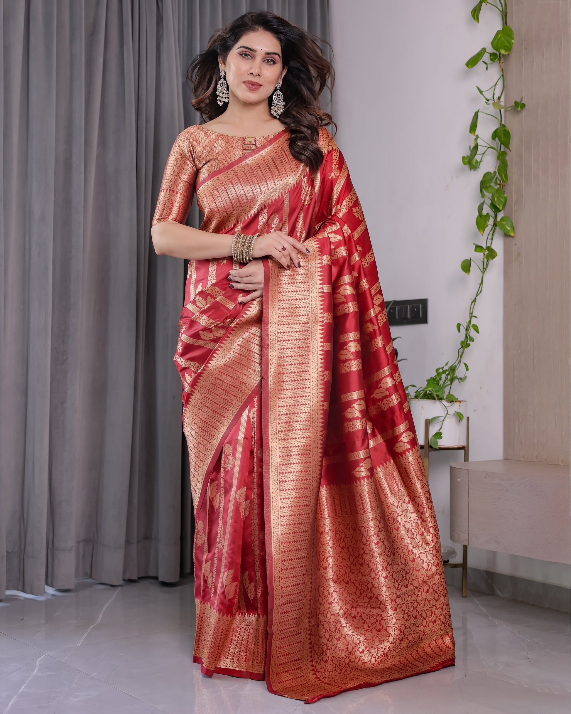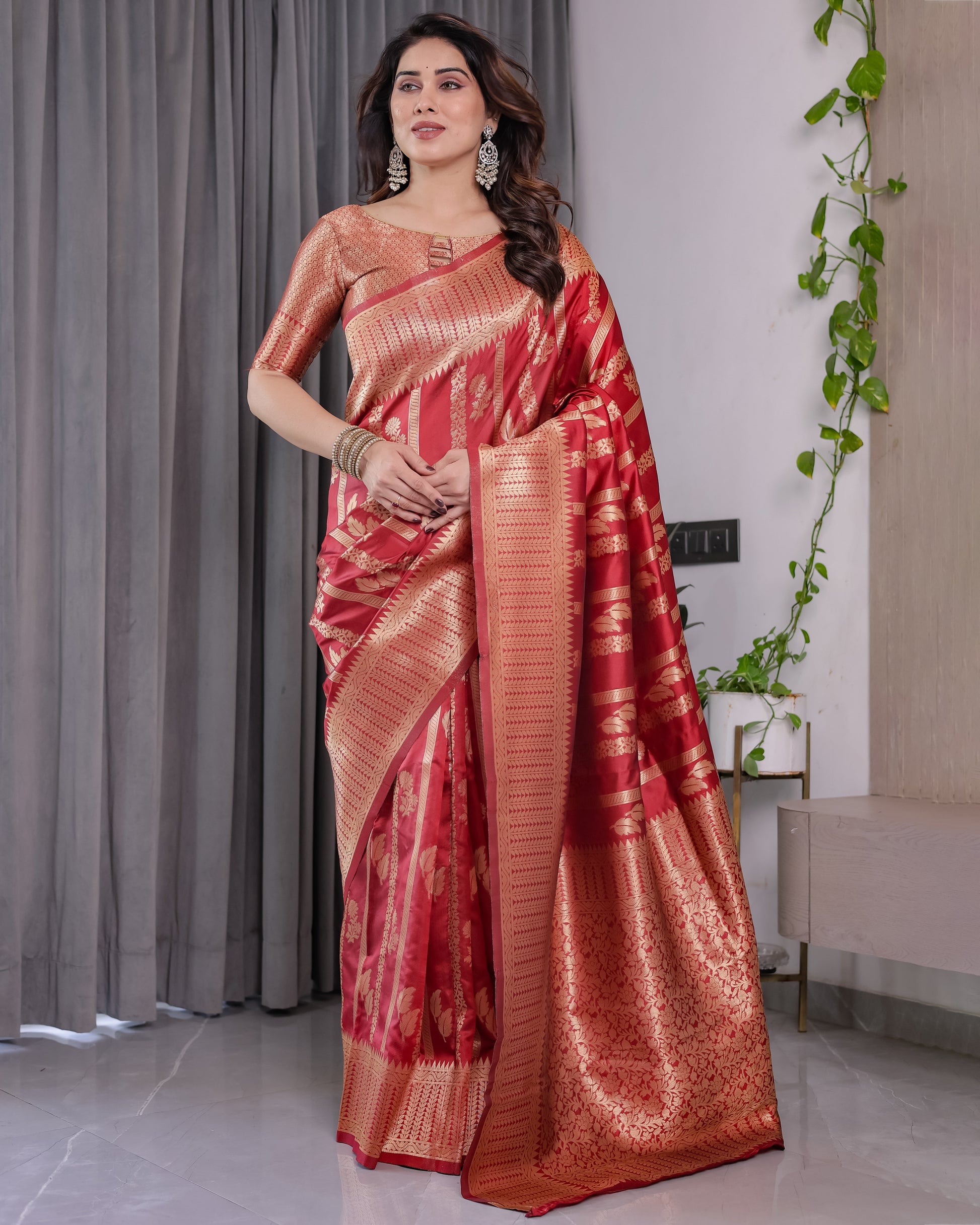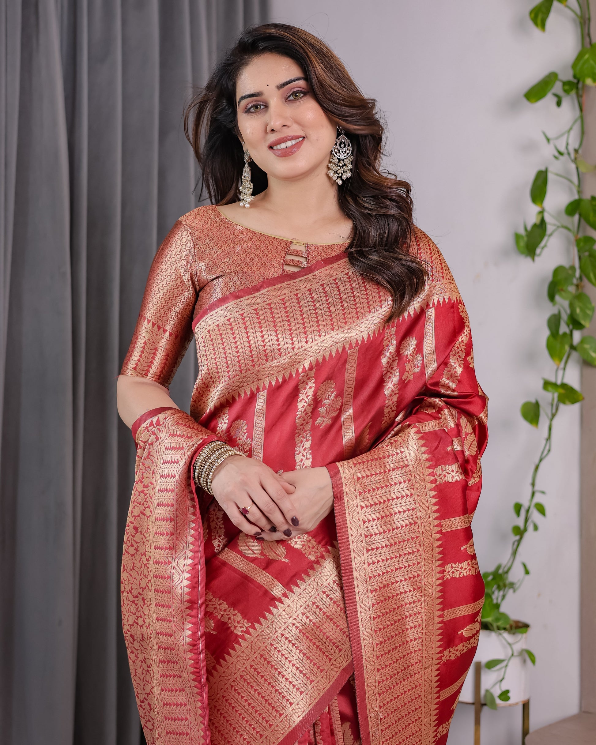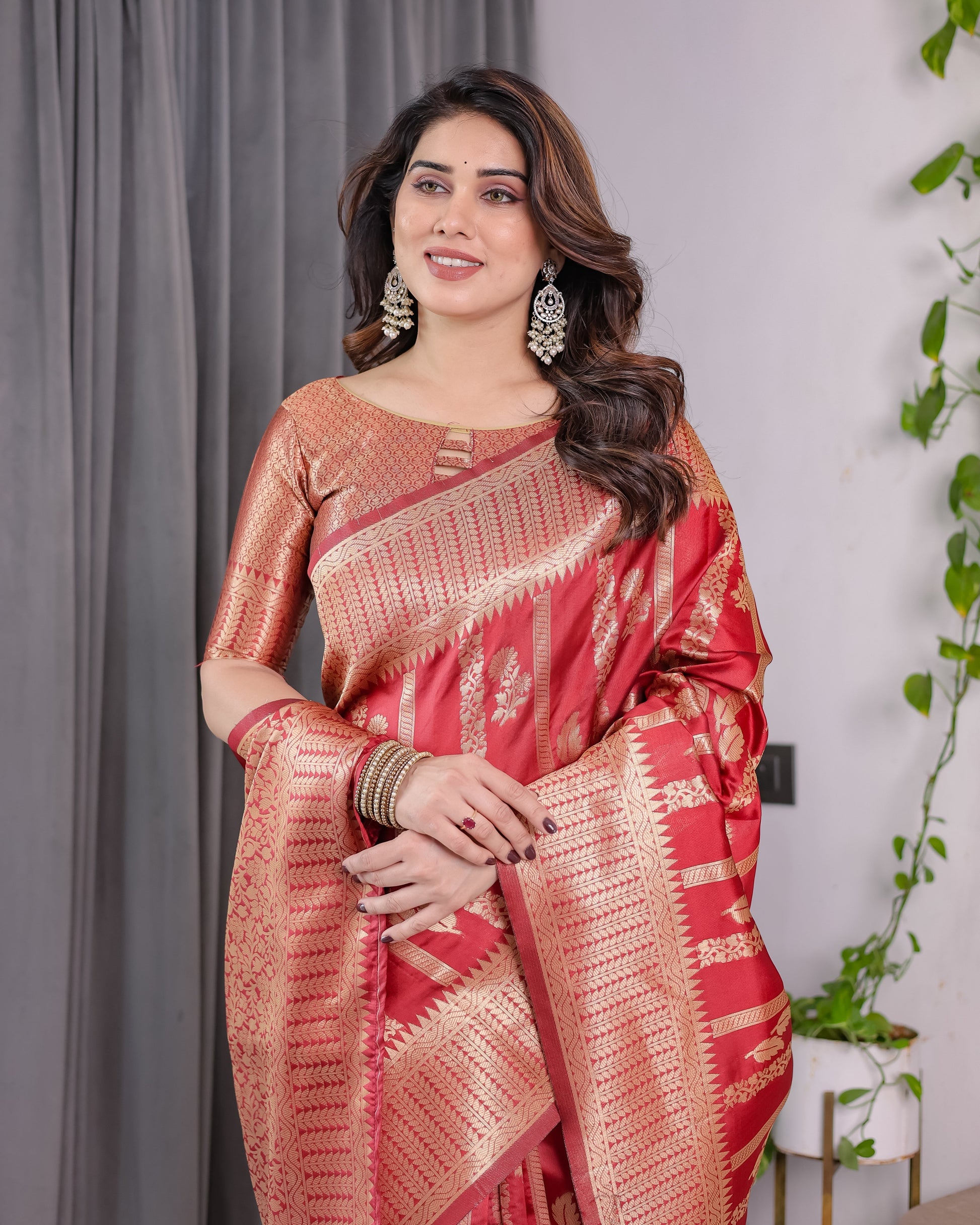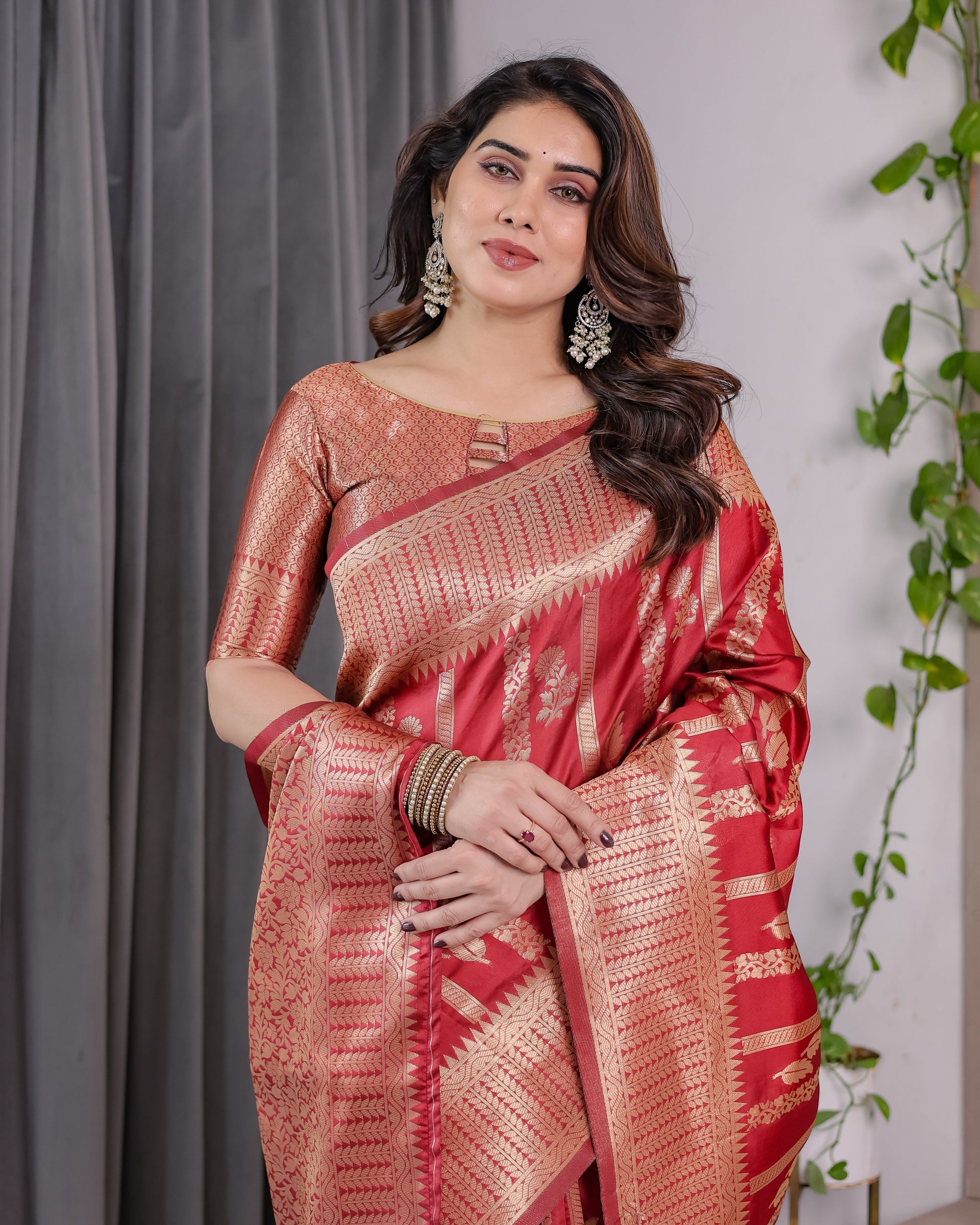 Color: Classic Bridal Red with Gold Zari Accents