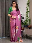 The digital florals blend soft pastel gradients with vibrant tones, giving the saree a contemporary garden-inspired feel.