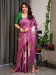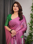 Suggested Styling: The saree pairs beautifully with bold contrast colours like green, emerald, or pastel pink