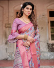 Graceful Grey Tussar Silk Saree with Pink Zari Border and Intricate Floral Motifs