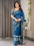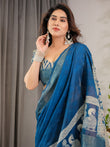 Celebrate your heritage in hues of elegance with this indigo blue cotton linen saree—where peacocks dance and culture flows in every pleat.