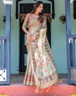 Madhubani-inspired pallu with floral and figure art