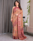 Multicolor Paisley Print Handloom Linen Saree with Traditional Rust Red Pallu & Gold Zari Border | Tassel Edging | Attached Blouse | 5.5m Saree + 0.8m Blouse