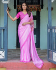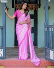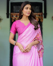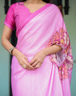 🎨 Color: Soft Pastel Pink saree with vibrant pink floral pallu
