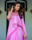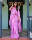 Pastel Pink Designer Freehand Saree with Floral Pallu & Zigzag Blouse | Satin Georgette | Handsfree Draping Feature