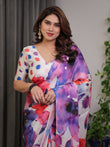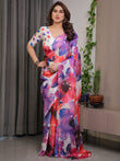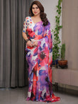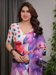 White Multicolor Watercolour Floral Print Satin Georgette Saree with Designer Attached Blouse – Premium Soft Flowing Fabric