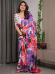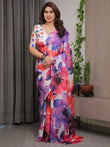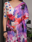 Elevate your wardrobe with this White Multicolor Watercolour Floral Printed Satin Georgette Saree, a masterpiece of art-inspired fashion crafted for modern women who love effortless elegance. The saree features hand-painted–style floral splashes in vibrant red, purple, blue, and pink hues, creating a striking yet graceful visual appeal that stands out in every setting.
