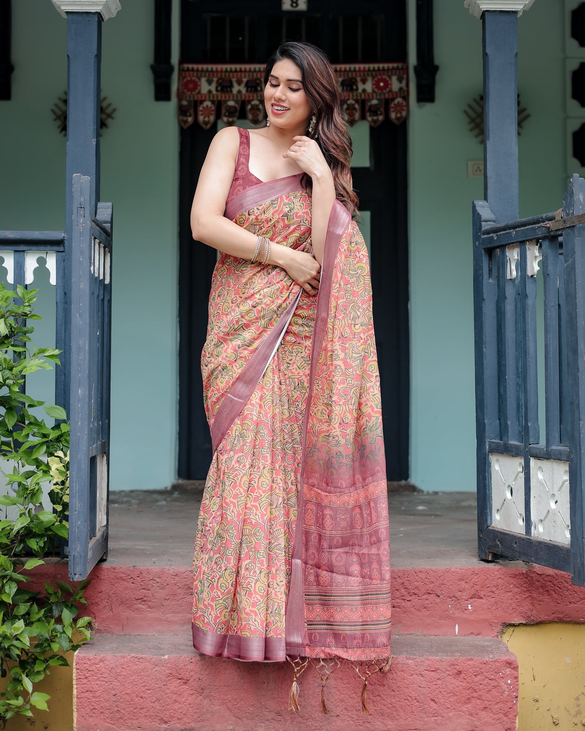 Elevate your ethnic collection with this pure cotton linen saree, a seamless fusion of traditional elegance and modern comfort.