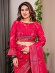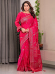 Ideal for weddings, festive occasions, poojas, traditional gatherings, and celebration wear, this rani pink Fendi satin saree is lightweight, comfortable, and effortlessly elegant—perfect for making a confident festive impression.