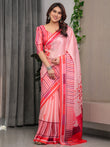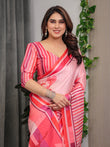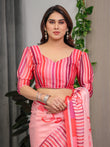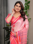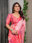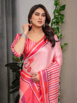 Rose Pink Satin Georgette Romantic Printed Saree with Proposal Silhouette, Heart Tree Pallu & Striped Border Blouse
