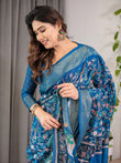 Celebrate heritage and natural beauty with this royal blue cotton linen saree—where artistic storytelling meets ethnic grace.