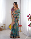 Sea Green & Purple Linen Cotton Saree with Hand-Painted Krishna Raas Leela Pallu