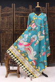 Elevate your ethnic styling with this exquisitely designed Malai Silk Printed Dupatta, crafted to reflect timeless elegance and artistic charm. Set on a rich teal blue base, the dupatta features a beautifully illustrated peacock motif, surrounded by delicate floral vines and blooming flowers in soft shades of pink, ivory, mustard, and green.