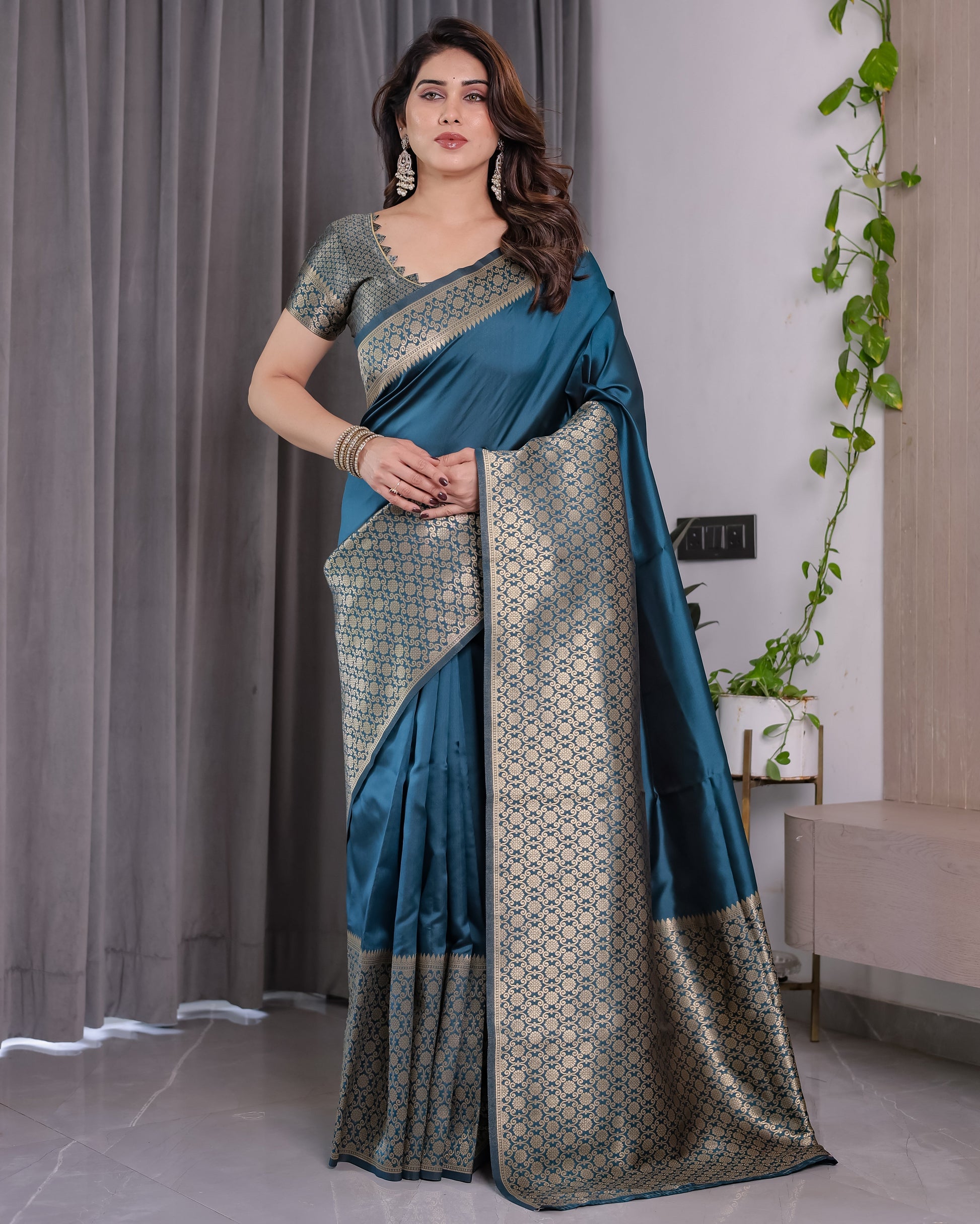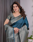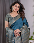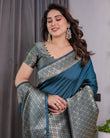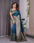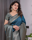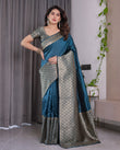 Teal Blue Pure Kanjivaram Silk Saree with Gold Woven Jacquard Border & Designer Blouse | 5.5m Saree + 0.8m Blouse Piece