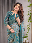 Graceful, grounded, and gorgeously detailed—this turquoise cotton linen saree is your go-to for subtle ethnic glam.