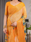 Color: Bright Marigold Orange with multicolor tribal art pallu