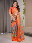 Color: Bright Marigold Orange with multicolor tribal art pallu