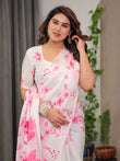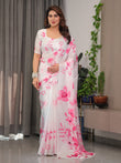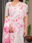 Saree Color: White with Pink Floral Print