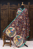 Wine Brown Malai Silk Dupatta with Peacock Mandala Print, Floral Vine Design & Tassel Detailing