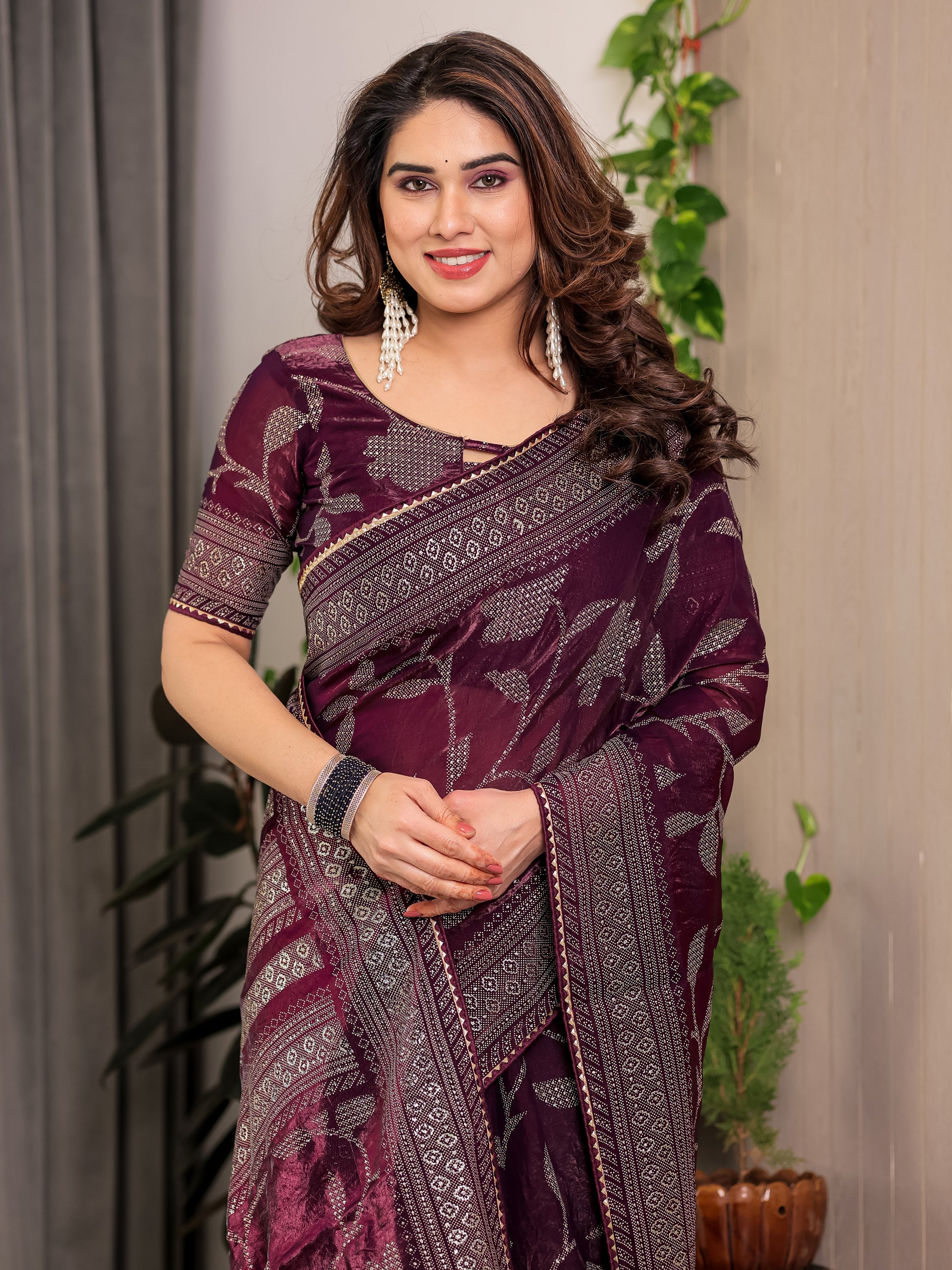 Ideal for weddings, festive celebrations, evening functions, poojas, and special occasions, this wine plum Fendi satin saree is lightweight, comfortable, and statement-worthy—making it a must-have addition to your premium ethnic collection.